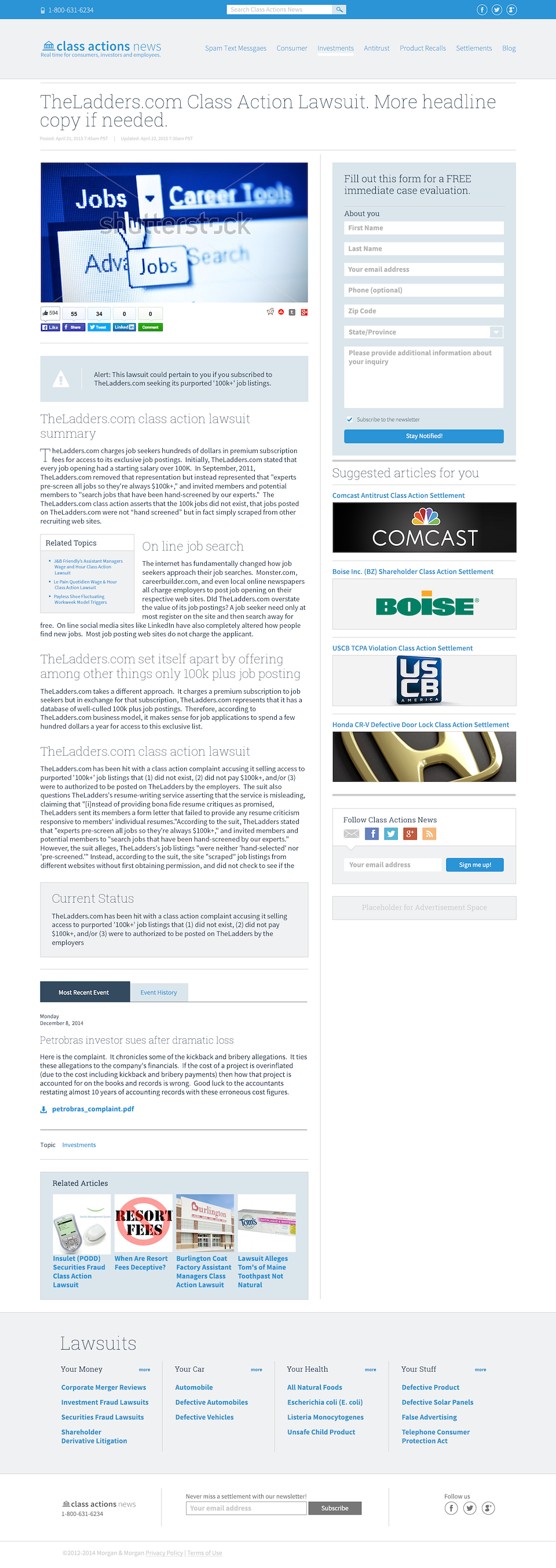 Problem: A flat-line in newsletter enrollment and readership for class actions firm.