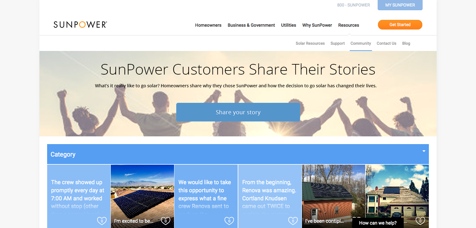 Proposed header design enabling customers to share their stories on the SunPower’s Community page.