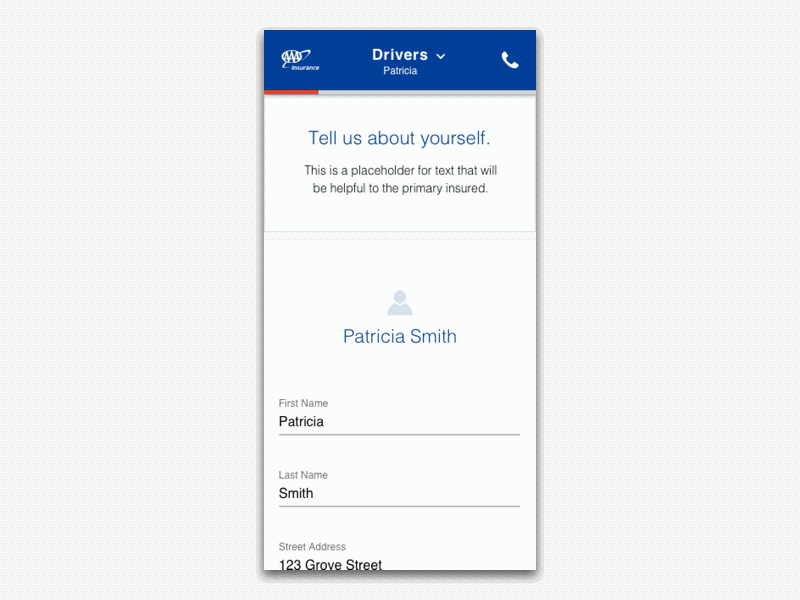 A dropdown animation may also be utilized for multiple driver auto insurance quote flow.
