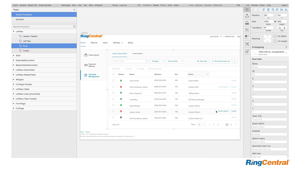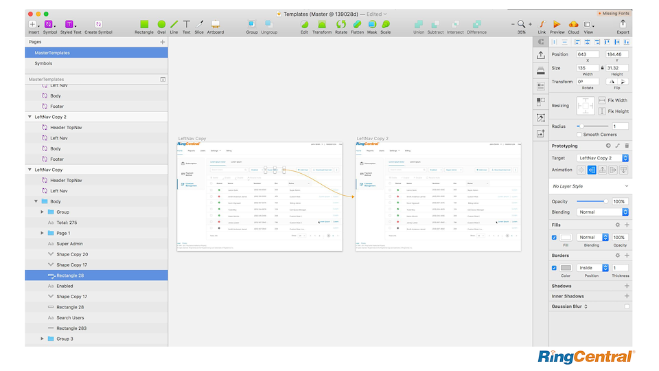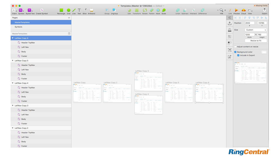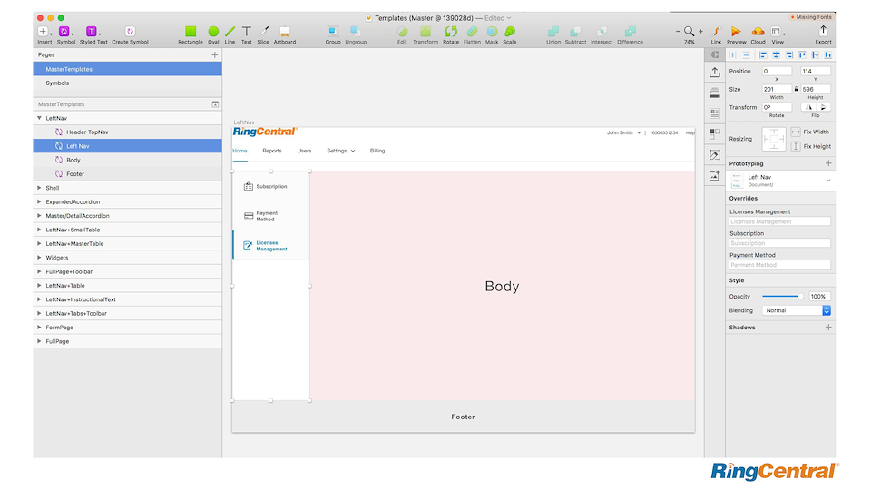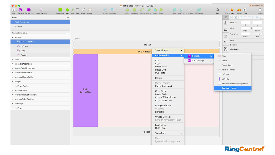 The native file is launched, and designers can begin working within the parameters of the design system. Here, the header component is populated.