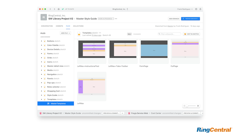 Components are kept and maintained in a centralized versioning hub. With this tool (called Abstract), any component can be access and modified by a designer while tracking its version history.