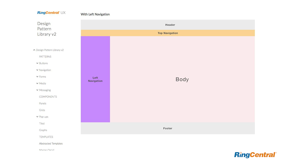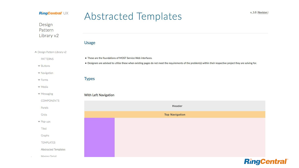 To access the library of UI patterns, a designer may visit the online version where definitions can be referenced for correct usage and behavior of an array of common components and templates to create high fidelity mock ups.